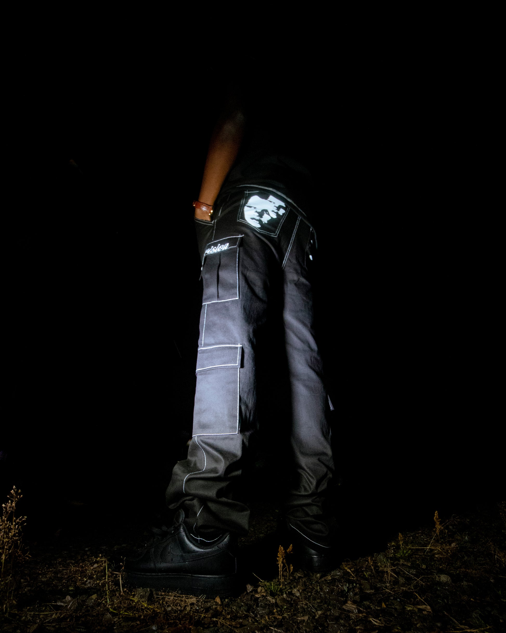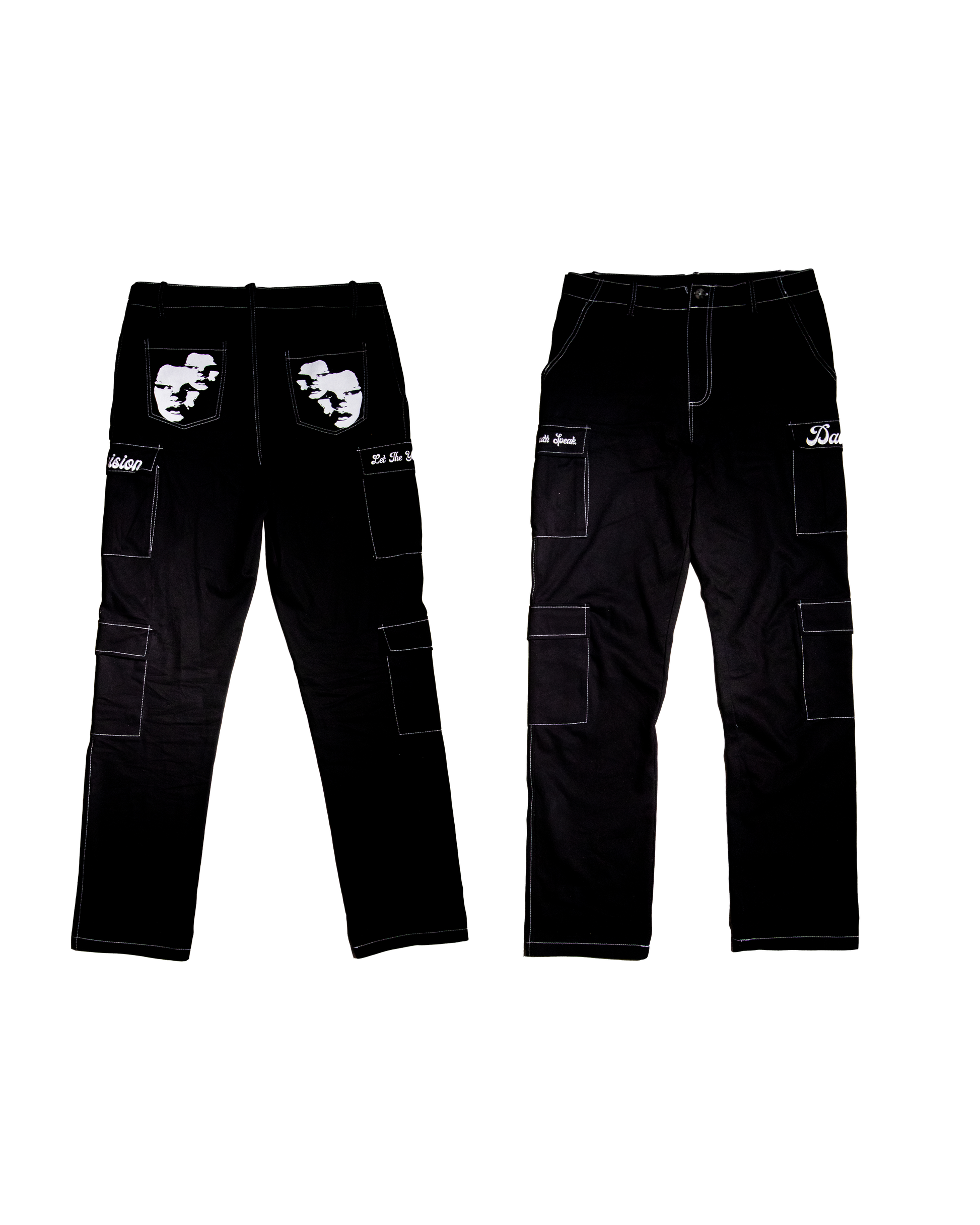 - screen printing on back pockets